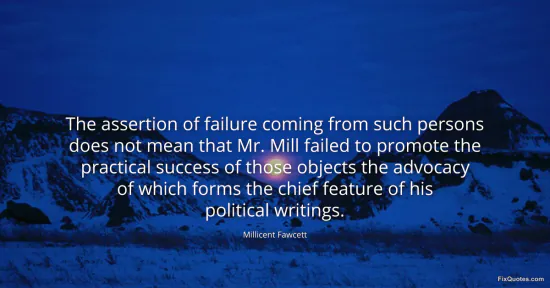 Fawcett, Millicent. "The assertion of failure coming from such persons does not mean that Mr. Mill failed to promote the practical success of those objects the advocacy of which forms the chief feature of his political writings." FixQuotes. January 17, 2026. https://fixquotes.com/quotes/the-assertion-of-failure-coming-from-such-persons-77929/.