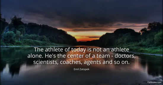 Zatopek, Emil. (2026, January 16). The athlete of today is not an athlete alone. He's the center of a team - doctors, scientists, coaches, agents and so on. FixQuotes. https://fixquotes.com/quotes/the-athlete-of-today-is-not-an-athlete-alone-hes-83897/