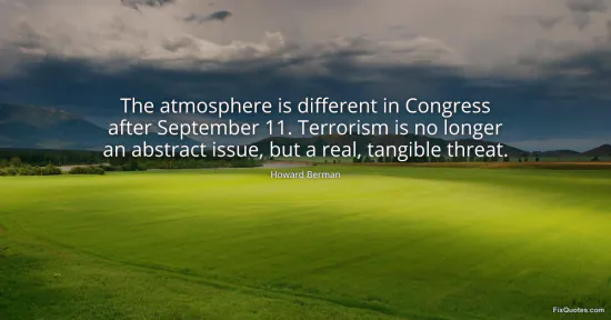 Berman, Howard. (2026, January 17). The atmosphere is different in Congress after September 11. Terrorism is no longer an abstract issue, but a real, tangible threat. FixQuotes. https://fixquotes.com/quotes/the-atmosphere-is-different-in-congress-after-69619/