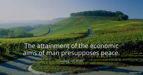 Mises, Ludwig von. (2026, January 17). The attainment of the economic aims of man presupposes peace. FixQuotes. https://fixquotes.com/quotes/the-attainment-of-the-economic-aims-of-man-77272/