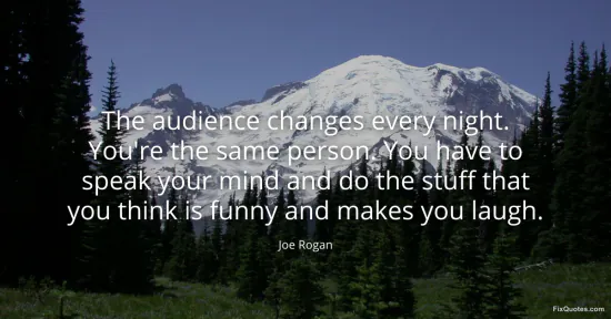 Rogan, Joe. (2026, January 17). The audience changes every night. You're the same person. You have to speak your mind and do the stuff that you think is funny and makes you laugh. FixQuotes. https://fixquotes.com/quotes/the-audience-changes-every-night-youre-the-same-60669/