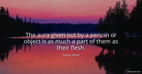 Freud, Lucian. (2026, January 15). The aura given out by a person or object is as much a part of them as their flesh. FixQuotes. https://fixquotes.com/quotes/the-aura-given-out-by-a-person-or-object-is-as-147534/