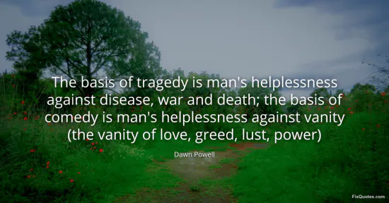 Powell, Dawn. (2026, January 17). The basis of tragedy is man's helplessness against disease, war and death; the basis of comedy is man's helplessness against vanity (the vanity of love, greed, lust, power). FixQuotes. https://fixquotes.com/quotes/the-basis-of-tragedy-is-mans-helplessness-against-50924/