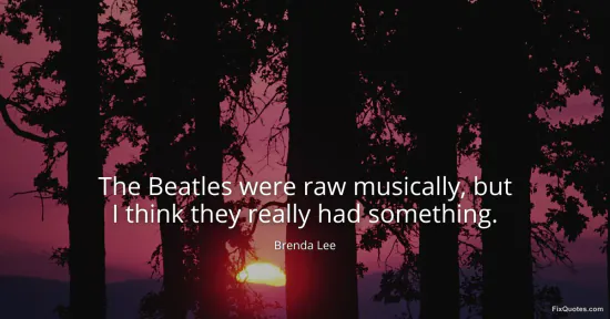 Lee, Brenda. (2026, January 17). The Beatles were raw musically, but I think they really had something. FixQuotes. https://fixquotes.com/quotes/the-beatles-were-raw-musically-but-i-think-they-61433/