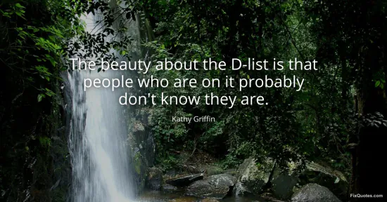 Griffin, Kathy. "The beauty about the D-list is that people who are on it probably don't know they are." FixQuotes. January 15, 2026. https://fixquotes.com/quotes/the-beauty-about-the-d-list-is-that-people-who-166116/.