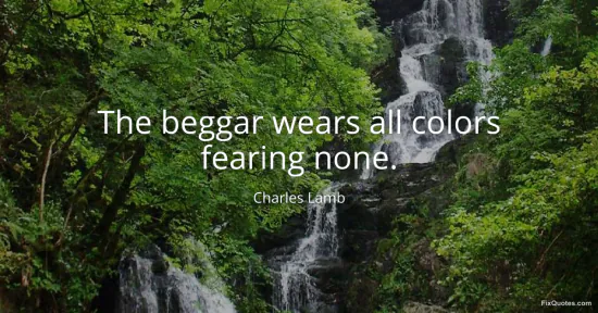 Lamb, Charles. "The beggar wears all colors fearing none." FixQuotes. Accessed February 2, 2026. https://fixquotes.com/quotes/the-beggar-wears-all-colors-fearing-none-141908/.