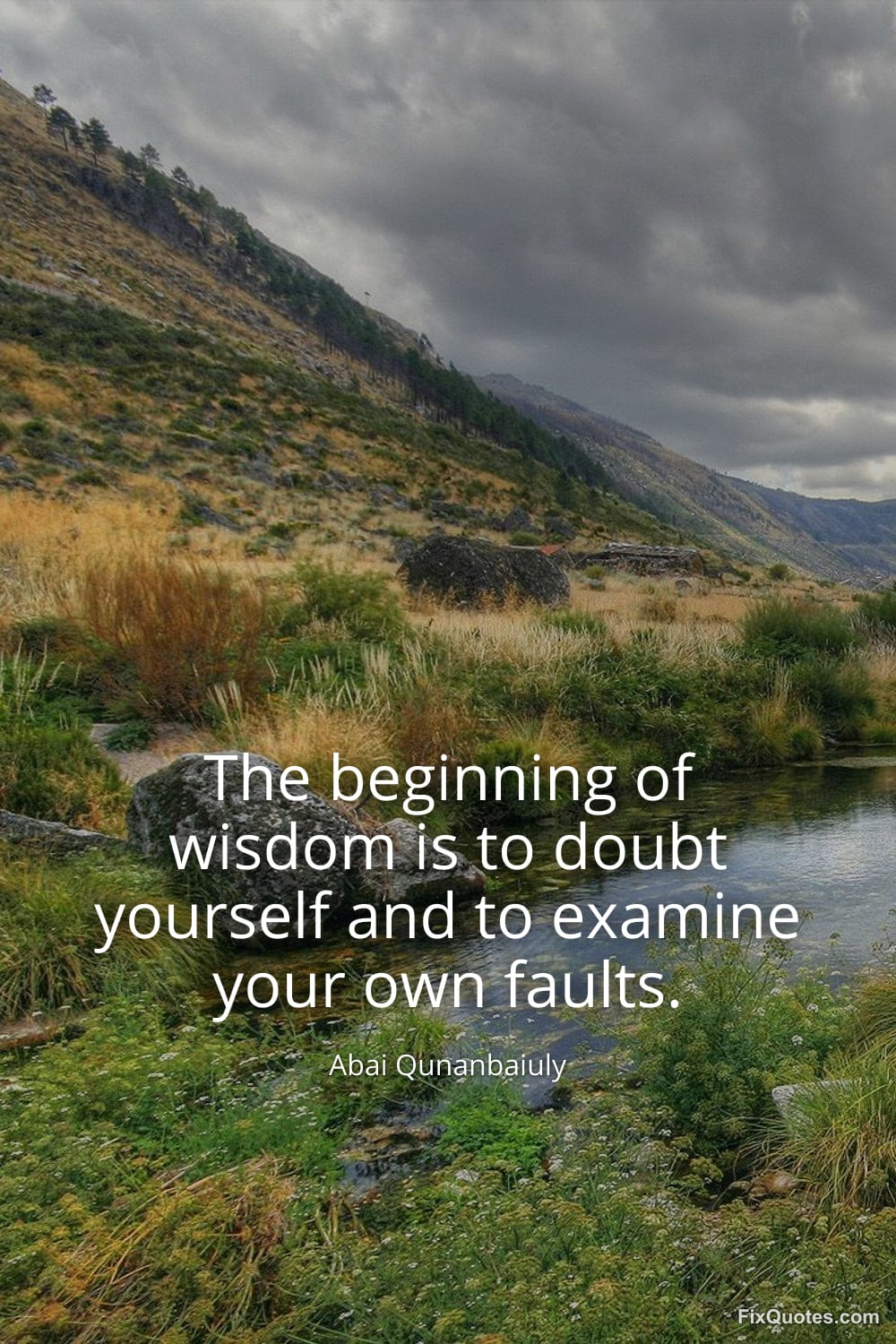 Qunanbaiuly, Abai. "The beginning of wisdom is to doubt yourself and to examine your own faults." FixQuotes. February 14, 2026. https://fixquotes.com/quotes/the-beginning-of-wisdom-is-to-doubt-yourself-and-185310/.