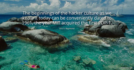Raymond, Eric S. "The beginnings of the hacker culture as we know it today can be conveniently dated to 1961, the year MIT acquired the first PDP-1." FixQuotes. January 15, 2026. https://fixquotes.com/quotes/the-beginnings-of-the-hacker-culture-as-we-know-148019/.