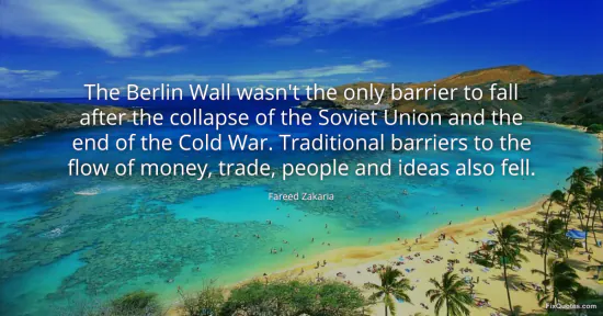 Zakaria, Fareed. (2026, January 15). The Berlin Wall wasn't the only barrier to fall after the collapse of the Soviet Union and the end of the Cold War. Traditional barriers to the flow of money, trade, people and ideas also fell. FixQuotes. https://fixquotes.com/quotes/the-berlin-wall-wasnt-the-only-barrier-to-fall-143825/