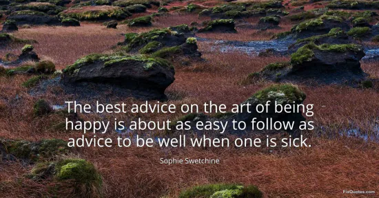"The best advice on the art of being happy is about as easy to follow as advice to be well when one is sick." FixQuotes, 16 Jan. 2026, https://fixquotes.com/quotes/the-best-advice-on-the-art-of-being-happy-is-95483/. Accessed 28 Mar. 2026.