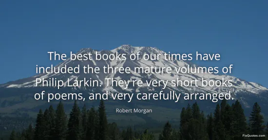 Morgan, Robert. "The best books of our times have included the three mature volumes of Philip Larkin. They're very short books of poems, and very carefully arranged." FixQuotes. January 15, 2026. https://fixquotes.com/quotes/the-best-books-of-our-times-have-included-the-149964/.