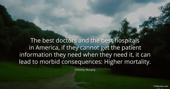 Murphy, Timothy. (2026, January 15). The best doctors and the best hospitals in America, if they cannot get the patient information they need when they need it, it can lead to morbid consequences: Higher mortality. FixQuotes. https://fixquotes.com/quotes/the-best-doctors-and-the-best-hospitals-in-97713/