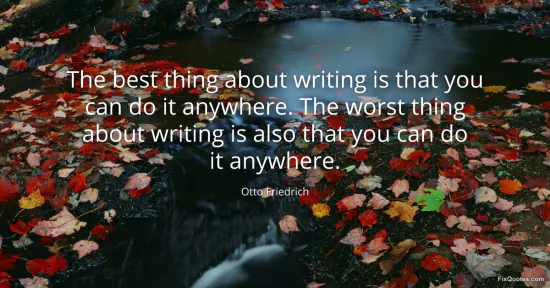 Friedrich, Otto. "The best thing about writing is that you can do it anywhere. The worst thing about writing is also that you can do it anywhere." FixQuotes. January 15, 2026. https://fixquotes.com/quotes/the-best-thing-about-writing-is-that-you-can-do-171509/.