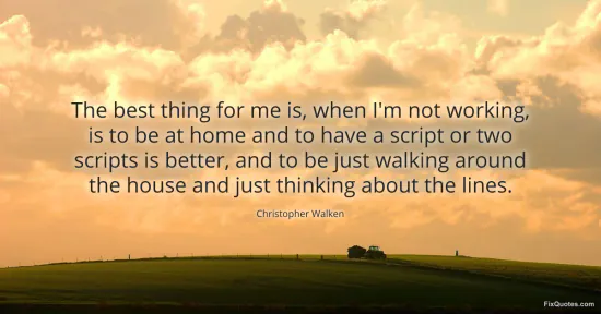 Walken, Christopher. (2026, January 15). The best thing for me is, when I'm not working, is to be at home and to have a script or two scripts is better, and to be just walking around the house and just thinking about the lines. FixQuotes. https://fixquotes.com/quotes/the-best-thing-for-me-is-when-im-not-working-is-150328/