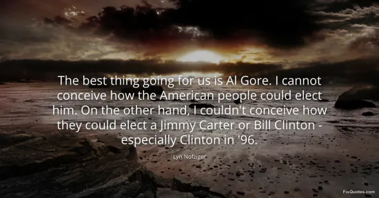 Nofziger, Lyn. (2026, January 15). The best thing going for us is Al Gore. I cannot conceive how the American people could elect him. On the other hand, I couldn't conceive how they could elect a Jimmy Carter or Bill Clinton - especially Clinton in '96. FixQuotes. https://fixquotes.com/quotes/the-best-thing-going-for-us-is-al-gore-i-cannot-155451/