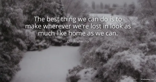 Fry, Christopher. (2026, January 16). The best thing we can do is to make wherever we're lost in look as much like home as we can. FixQuotes. https://fixquotes.com/quotes/the-best-thing-we-can-do-is-to-make-wherever-were-139478/