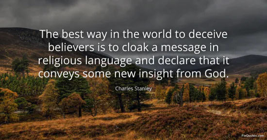 Stanley, Charles. "The best way in the world to deceive believers is to cloak a message in religious language and declare that it conveys some new insight from God." FixQuotes. January 18, 2026. https://fixquotes.com/quotes/the-best-way-in-the-world-to-deceive-believers-is-16416/.