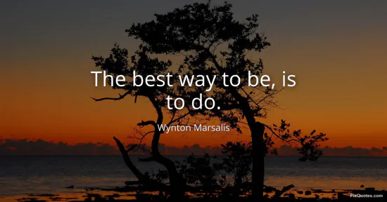 Marsalis’s line lands like a jazz phrase: spare, rhythmic, and deceptively strict about what counts as real. “The best way to be, is to do” isn’t self-help fluff; it’s a rebuke to the modern habit of treating identity as a statement you can make and then outsource to vibes. He collapses “being” (the grand, philosophical noun we love to polish) into “doing” (the unglamorous verb that demands time, discipline, and the willingness to sound bad before you sound good). The grammar matters: “best way” implies there are other ways to “be” that look convincing but don’t hold up. Talk, branding, intention, even talent without practice become the decoys.