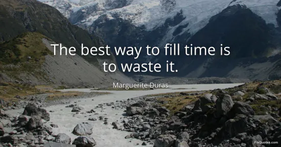 Duras, Marguerite. (2026, January 15). The best way to fill time is to waste it. FixQuotes. https://fixquotes.com/quotes/the-best-way-to-fill-time-is-to-waste-it-79542/
