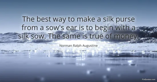 Augustine, Norman Ralph. "The best way to make a silk purse from a sow's ear is to begin with a silk sow. The same is true of money." FixQuotes. January 16, 2026. https://fixquotes.com/quotes/the-best-way-to-make-a-silk-purse-from-a-sows-ear-128168/.
