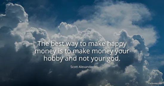 Alexander, Scott. (2026, January 16). The best way to make happy money is to make money your hobby and not your god. FixQuotes. https://fixquotes.com/quotes/the-best-way-to-make-happy-money-is-to-make-money-129291/