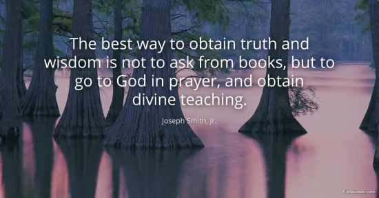 Jr., Joseph Smith,. "The best way to obtain truth and wisdom is not to ask from books, but to go to God in prayer, and obtain divine teaching." FixQuotes. January 17, 2026. https://fixquotes.com/quotes/the-best-way-to-obtain-truth-and-wisdom-is-not-to-80471/.