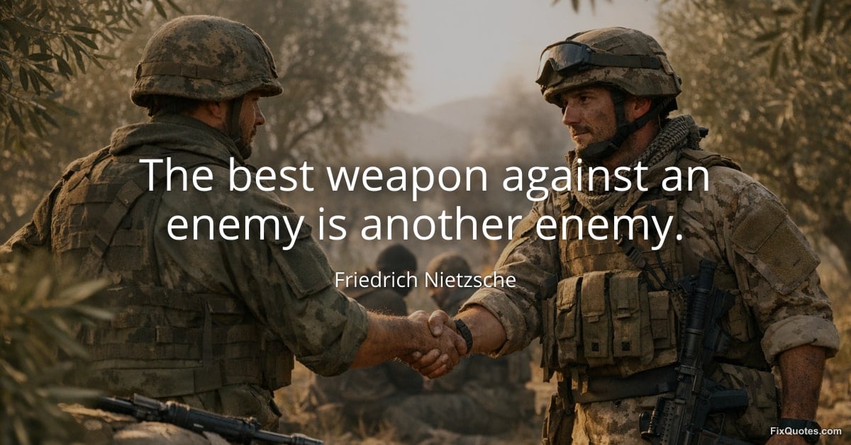 Nietzsche, Friedrich. (2026, February 9). The best weapon against an enemy is another enemy. FixQuotes. https://fixquotes.com/quotes/the-best-weapon-against-an-enemy-is-another-enemy-34558/