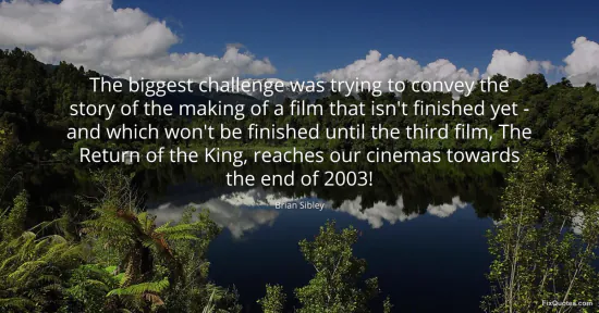 Sibley, Brian. "The biggest challenge was trying to convey the story of the making of a film that isn't finished yet - and which won't be finished until the third film, The Return of the King, reaches our cinemas towards the end of 2003!" FixQuotes. January 17, 2026. https://fixquotes.com/quotes/the-biggest-challenge-was-trying-to-convey-the-39388/.
