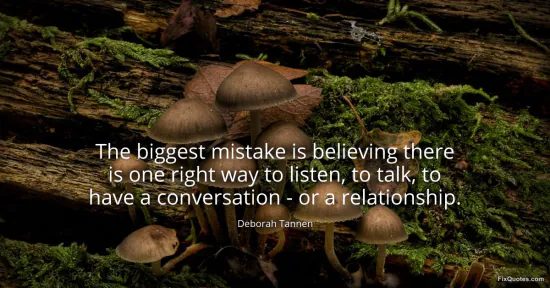 Tannen, Deborah. (2026, January 17). The biggest mistake is believing there is one right way to listen, to talk, to have a conversation - or a relationship. FixQuotes. https://fixquotes.com/quotes/the-biggest-mistake-is-believing-there-is-one-56650/