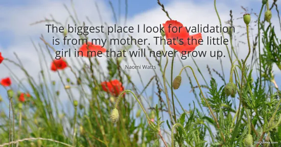 Watts, Naomi. "The biggest place I look for validation is from my mother. That's the little girl in me that will never grow up." FixQuotes. January 17, 2026. https://fixquotes.com/quotes/the-biggest-place-i-look-for-validation-is-from-78503/.