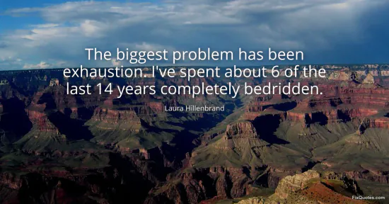 Hillenbrand, Laura. "The biggest problem has been exhaustion. I've spent about 6 of the last 14 years completely bedridden." FixQuotes. January 16, 2026. https://fixquotes.com/quotes/the-biggest-problem-has-been-exhaustion-ive-spent-87967/.