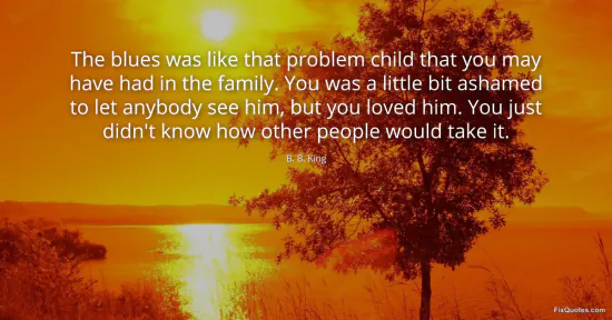 King, B. B. "The blues was like that problem child that you may have had in the family. You was a little bit ashamed to let anybody see him, but you loved him. You just didn't know how other people would take it." FixQuotes. January 15, 2026. https://fixquotes.com/quotes/the-blues-was-like-that-problem-child-that-you-144827/.