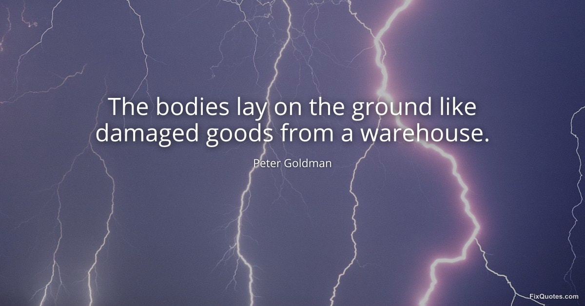Goldman, Peter. (2026, January 16). The bodies lay on the ground like damaged goods from a warehouse. FixQuotes. https://fixquotes.com/quotes/the-bodies-lay-on-the-ground-like-damaged-goods-83315/