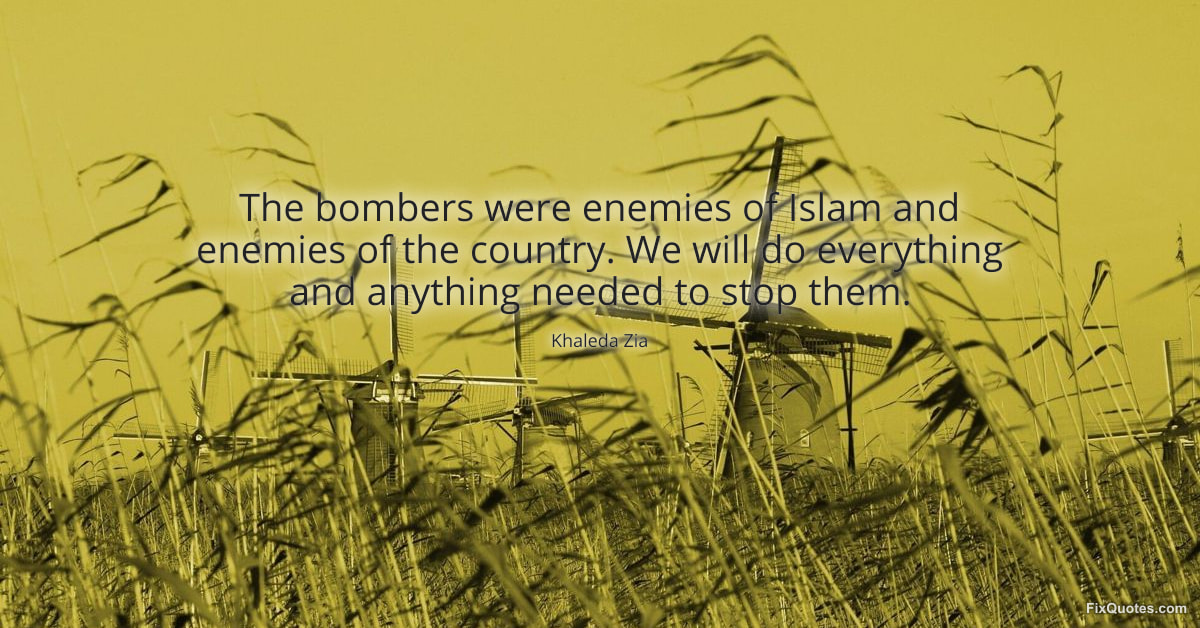 Zia, Khaleda. (2026, January 17). The bombers were enemies of Islam and enemies of the country. We will do everything and anything needed to stop them. FixQuotes. https://fixquotes.com/quotes/the-bombers-were-enemies-of-islam-and-enemies-of-75662/