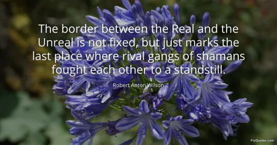 Wilson, Robert Anton. "The border between the Real and the Unreal is not fixed, but just marks the last place where rival gangs of shamans fought each other to a standstill." FixQuotes. January 15, 2026. https://fixquotes.com/quotes/the-border-between-the-real-and-the-unreal-is-not-106674/.