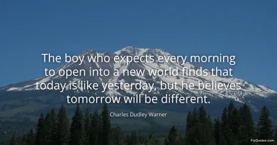 Warner, Charles Dudley. "The boy who expects every morning to open into a new world finds that today is like yesterday, but he believes tomorrow will be different." FixQuotes. January 18, 2026. https://fixquotes.com/quotes/the-boy-who-expects-every-morning-to-open-into-a-3737/.