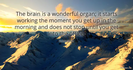Frost, Robert. (2026, January 14). The brain is a wonderful organ; it starts working the moment you get up in the morning and does not stop until you get into the office. FixQuotes. https://fixquotes.com/quotes/the-brain-is-a-wonderful-organ-it-starts-working-34316/