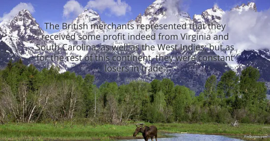 "The British merchants represented that they received some profit indeed from Virginia and South Carolina, as well as the West Indies; but as for the rest of this continent, they were constant losers in trade." FixQuotes, 17 Jan. 2026, https://fixquotes.com/quotes/the-british-merchants-represented-that-they-53251/. Accessed 19 Feb. 2026.