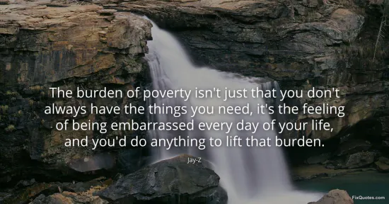 Jay-Z. (2026, January 15). The burden of poverty isn't just that you don't always have the things you need, it's the feeling of being embarrassed every day of your life, and you'd do anything to lift that burden. FixQuotes. https://fixquotes.com/quotes/the-burden-of-poverty-isnt-just-that-you-dont-151311/