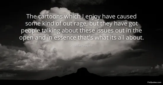 Shapiro, Jonathan. (2026, January 15). The cartoons which I enjoy have caused some kind of out rage, but they have got people talking about these issues out in the open and in essence that's what its all about. FixQuotes. https://fixquotes.com/quotes/the-cartoons-which-i-enjoy-have-caused-some-kind-148675/