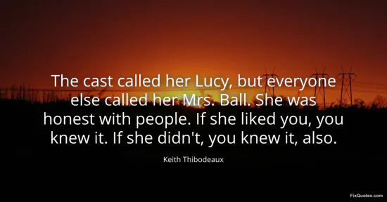Thibodeaux, Keith. (2026, January 16). The cast called her Lucy, but everyone else called her Mrs. Ball. She was honest with people. If she liked you, you knew it. If she didn't, you knew it, also. FixQuotes. https://fixquotes.com/quotes/the-cast-called-her-lucy-but-everyone-else-called-127062/