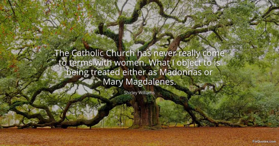 "The Catholic Church has never really come to terms with women. What I object to is being treated either as Madonnas or Mary Magdalenes"