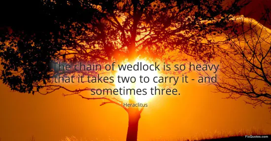 Heraclitus. "The chain of wedlock is so heavy that it takes two to carry it - and sometimes three." FixQuotes. January 15, 2026. https://fixquotes.com/quotes/the-chain-of-wedlock-is-so-heavy-that-it-takes-29357/.