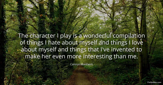 Manheim, Camryn. "The character I play is a wonderful compilation of things I hate about myself and things I love about myself and things that I've invented to make her even more interesting than me." FixQuotes. January 17, 2026. https://fixquotes.com/quotes/the-character-i-play-is-a-wonderful-compilation-42952/.
