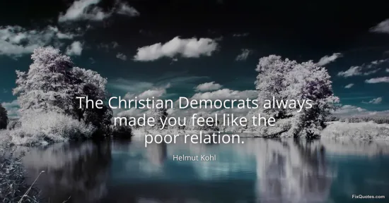 Kohl, Helmut. (2026, January 16). The Christian Democrats always made you feel like the poor relation. FixQuotes. https://fixquotes.com/quotes/the-christian-democrats-always-made-you-feel-like-118973/