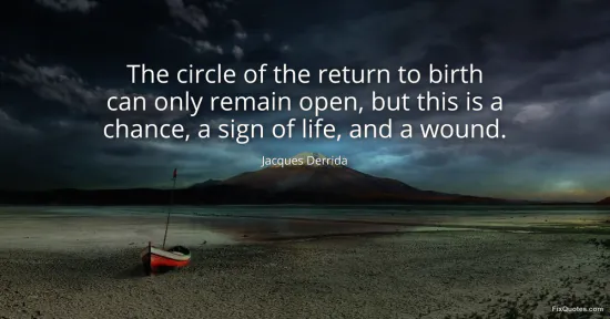 Derrida, Jacques. "The circle of the return to birth can only remain open, but this is a chance, a sign of life, and a wound." FixQuotes. January 18, 2026. https://fixquotes.com/quotes/the-circle-of-the-return-to-birth-can-only-remain-2721/.