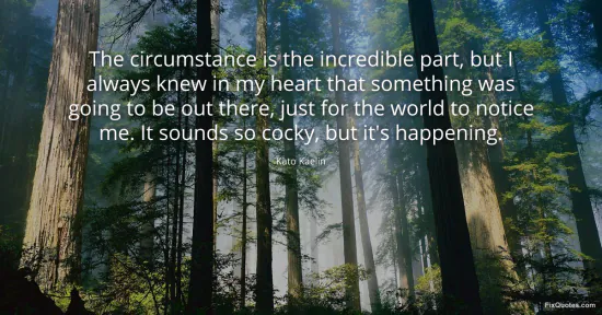 Kaelin, Kato. "The circumstance is the incredible part, but I always knew in my heart that something was going to be out there, just for the world to notice me. It sounds so cocky, but it's happening." FixQuotes. January 18, 2026. https://fixquotes.com/quotes/the-circumstance-is-the-incredible-part-but-i-11933/.