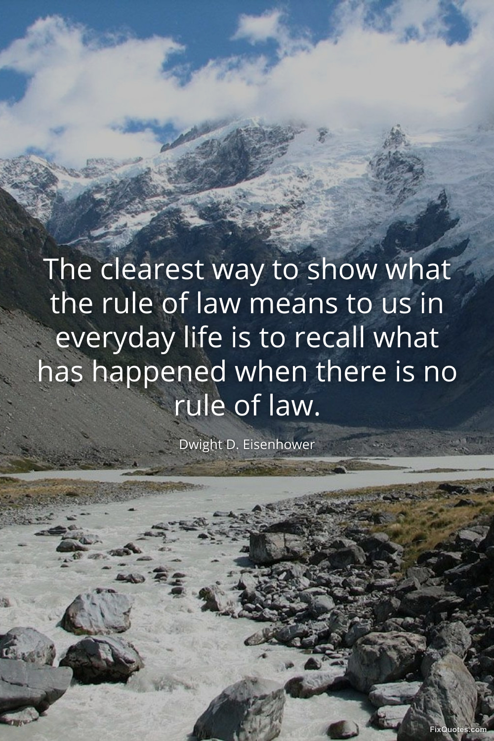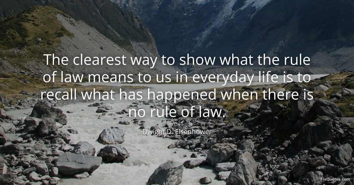 Eisenhower, Dwight D. (2026, January 15). The clearest way to show what the rule of law means to us in everyday life is to recall what has happened when there is no rule of law. FixQuotes. https://fixquotes.com/quotes/the-clearest-way-to-show-what-the-rule-of-law-16945/
