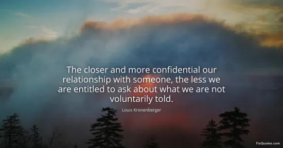 Kronenberger, Louis. "The closer and more confidential our relationship with someone, the less we are entitled to ask about what we are not voluntarily told." FixQuotes. January 16, 2026. https://fixquotes.com/quotes/the-closer-and-more-confidential-our-relationship-84671/.