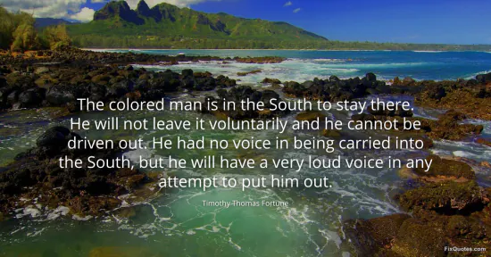 Fortune, Timothy Thomas. (2026, January 15). The colored man is in the South to stay there. He will not leave it voluntarily and he cannot be driven out. He had no voice in being carried into the South, but he will have a very loud voice in any attempt to put him out. FixQuotes. https://fixquotes.com/quotes/the-colored-man-is-in-the-south-to-stay-there-he-160074/